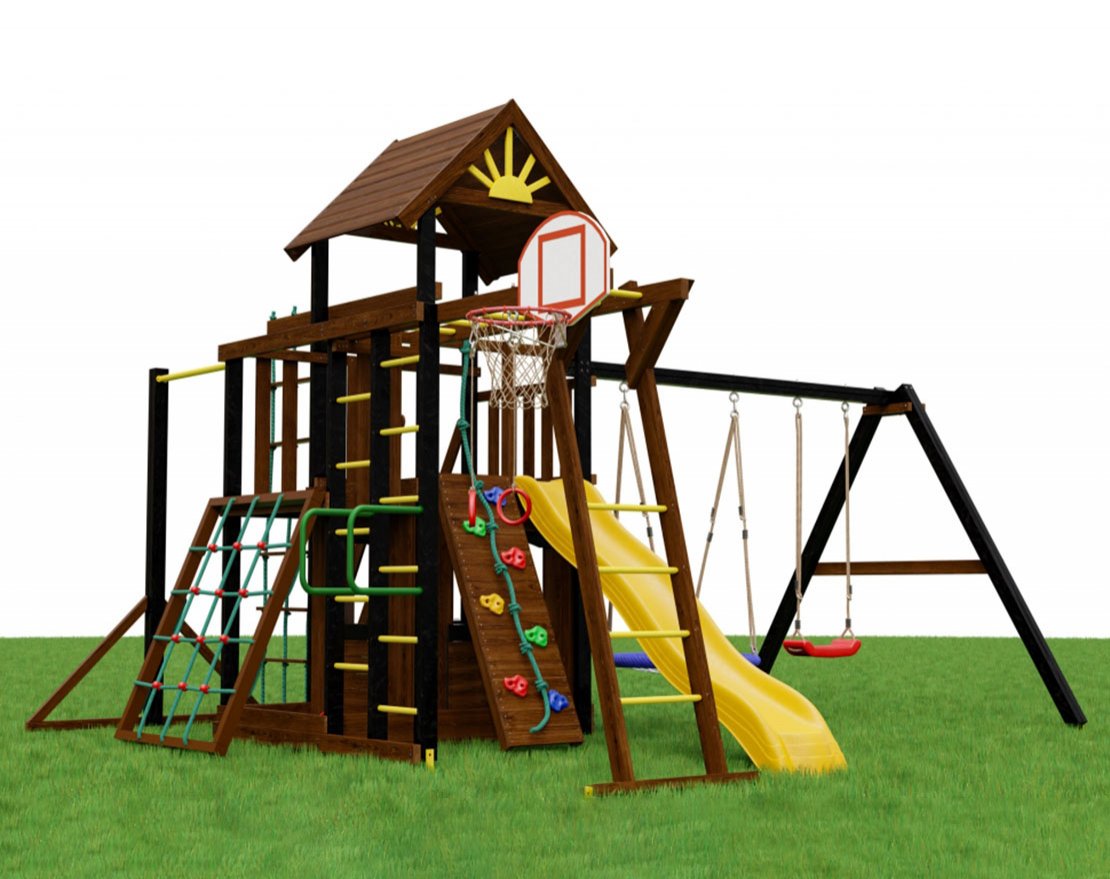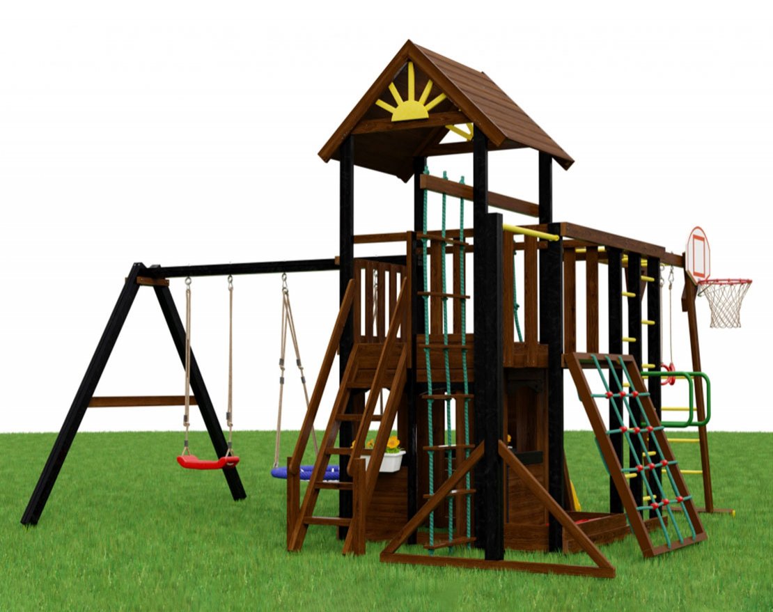 Если в семье дети разного возраста и интересов, Айова 6 станет универсальным решением. Этот компактный комплекс совмещает игровые и спортивные модули, чтобы каждый ребёнок нашёл себе занятие: малыши — домик, горку и качели, девочки — цветочницы для собственного сада, а мальчишки — спортивные снаряды и рукоход.