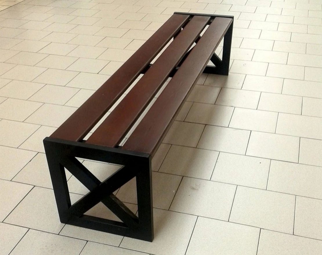 Простая и надёжная конструкция, изящная простота. Сиденье на скамейке выполнено из дерева.