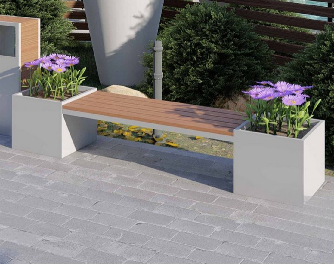Скамья с совмещёнными клумбами или местами для установки цветочных горшков.
