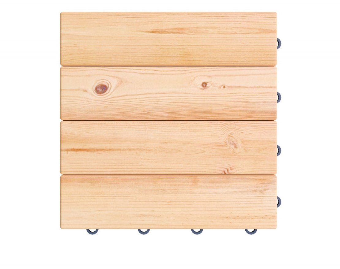Садовый паркет формируется из небольших плиток. Каждый элемент состоит из пластиковой основы и закрепленной на ней планки из древесины. Сосна/берёза обрабатывается теплом и паром без применения химических составов.