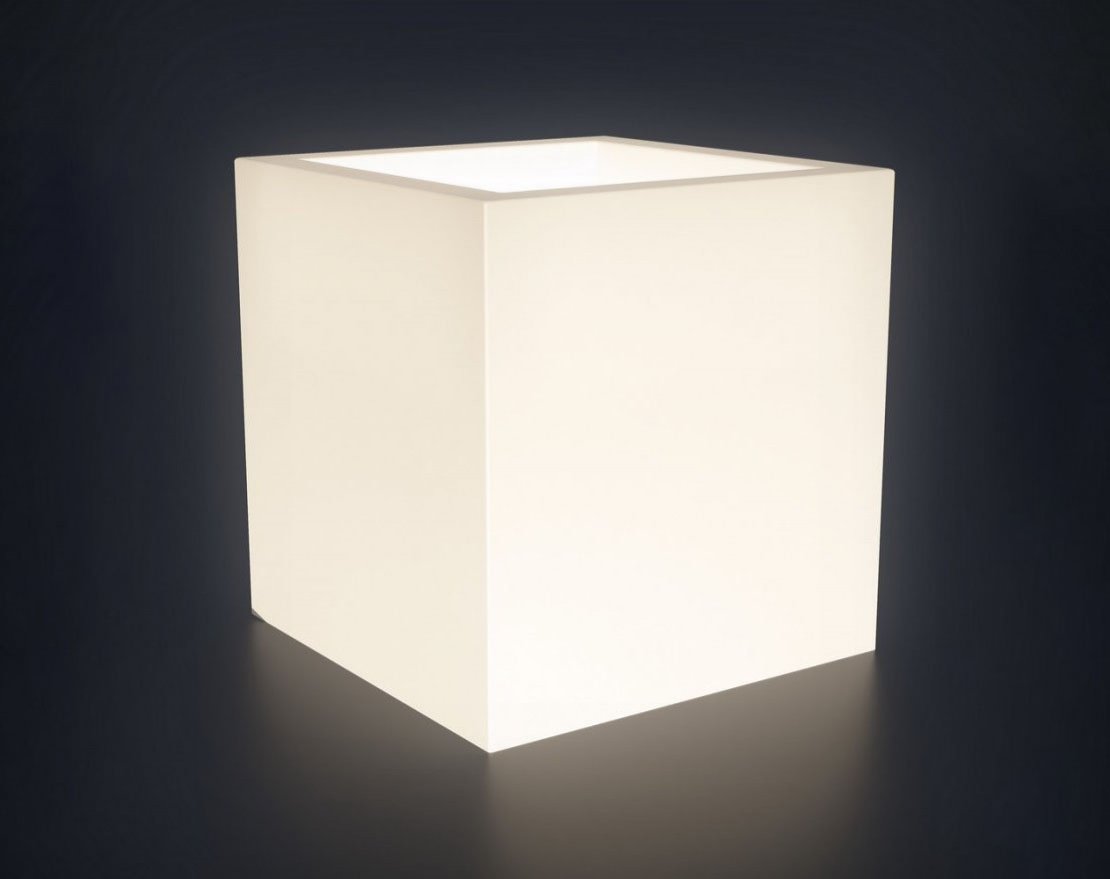 Кашпо-куб Cubo с подсветкой – это декоративное изделие для выращивания растений, цветов и деревьев, имеющее корпус из полиэтилена низкого давления и расположенный в нижней части светодиодный элемент.